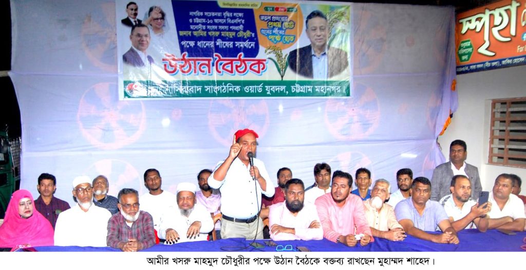 তিনি গতকাল ১৭ নভেম্বর (সোমবার) সন্ধ্যায় নাসিরাবাদ গার্লস স্কুল গেইটে ৪২ নং নাসিরাবাদ সাংগঠনিক ওয়ার্ড যুবদলের উদ্যোগে চট্টগ্রাম-১০ নির্বাচনী এলাকায় আগামী সংসদ নির্বাচনে বিএনপি মনোনীত ধানের শীষের প্রার্থী আমীর খসরু মাহমুদ চৌধুরীর পক্ষে নাগরিক সচেতনতা বৃদ্ধি ও কেন্দ্র ভিত্তিক স্থানীয় এলাকা বাটাগলি, আলফালাহ গলি, উইমেন কলেজ, গার্লস স্কুল, বয়েজ স্কুল, সিএন্ডবি, চৌধুরীপাড়ার আপামর জনসাধারণের সাথে উঠান বৈঠকে প্রধান অতিথির বক্তব্যে উপরোক্ত কথা বলেন।