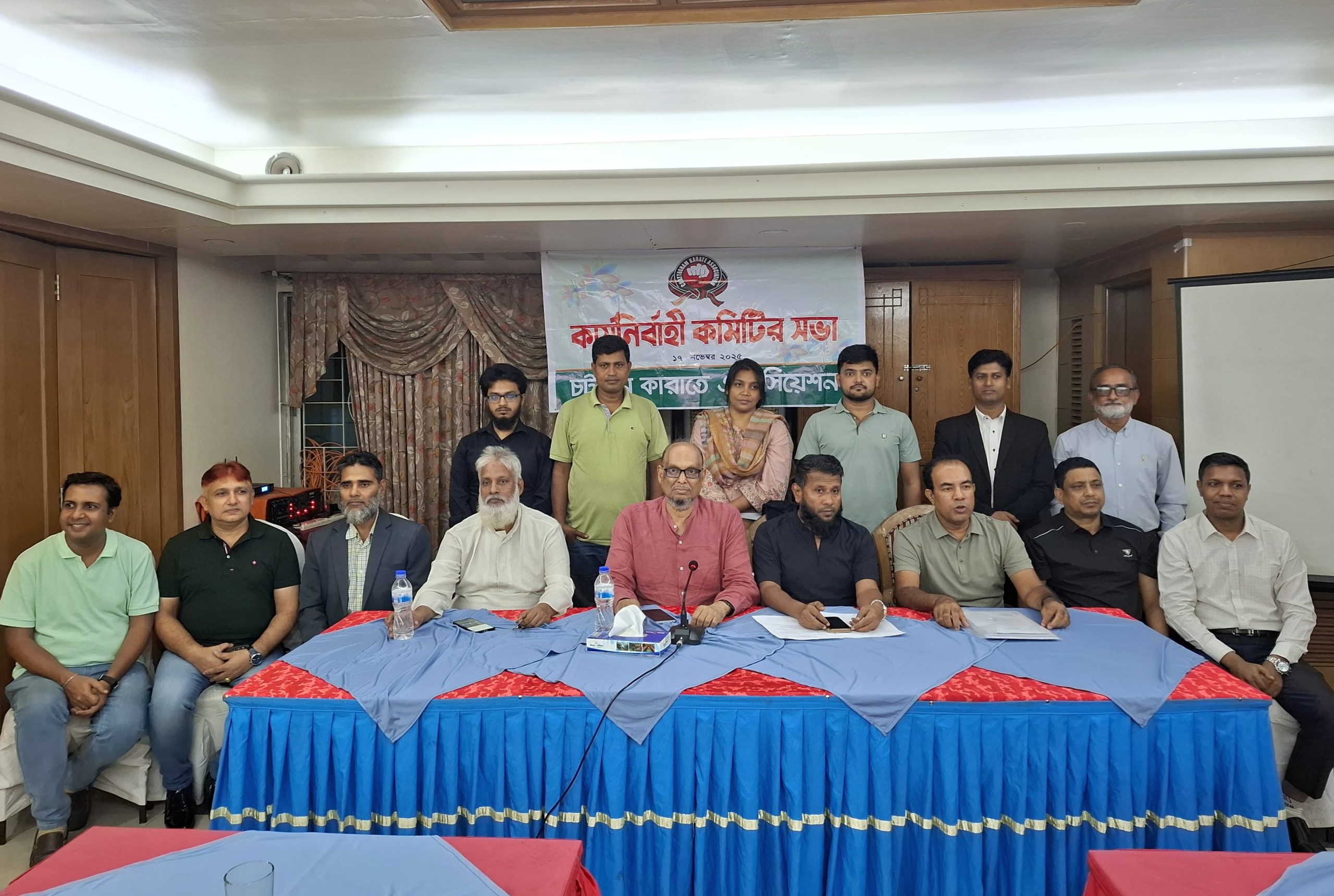 চট্টগ্রাম কারাতে এসোসিয়েশনের কার্যনির্বাহী কমিটির সভা অনুষ্ঠিত হয়েছে সোমবার (১৭ নভেম্বর) রাতে নগরীর এশিয়ান এস আর হোটেলে। এসোসিয়েশনের সভাপতি সাবেক সিটি করপোরেশন কাউন্সিলর নিয়াজ মোহাম্মদ খানের সভাপতিত্বে ও সাংগঠনিক সম্পাদক আবু মোশারফ রাসেল এর সঞ্চালনায় অনুষ্ঠিত কার্যনির্বাহী কমিটির সভায় সাধারণ সম্পাদক কাউসার আহমেদ সম্প্রতি সংগঠনের আয়োজনে সম্পন্ন হাওয়া ২য় পুলিশ কমিশনার কাপ কারাতে প্রতিযোগিতার রিপোর্ট ও মুল্যায়ন সহ বিভিন্ন কার্যক্রমের ব্যাপারে কমিটির সদস্যদের অবগত করেন।