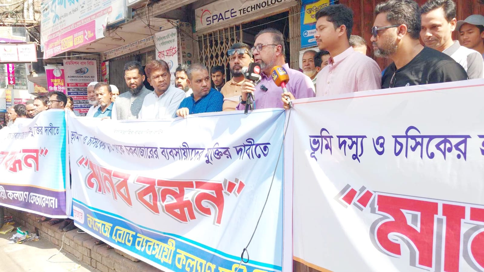 চট্টগ্রামের শিক্ষাজোন হিসেবে পরিচিত চকবাজার কলেজ রোড ও লালচাঁন্দ রোডের ব্যবসায়ীদের হয়রানি ও মুক্তির দাবিতে মানববন্ধন অনুষ্ঠিত হয়েছে নগরীর চকবাজার গুলজার চত্বরে।