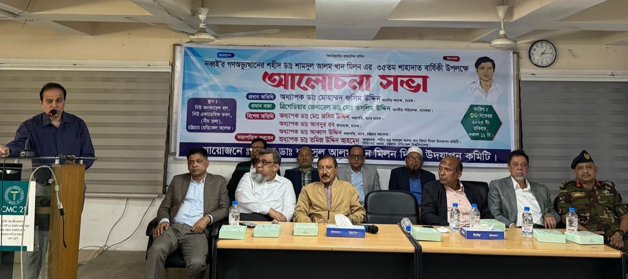 স্বৈরাচার ও ফ্যাসিবাদের দ্বারা বাংলাদেশের গনতন্ত্র বারবার ভুলুণ্ঠিত হচ্ছে। ১৯৯০ সালের ২৭ নভেম্বর গুলিতে ডাঃ শামসুল আলম খান মিলন নিহত হওয়ার পর স্বৈরাচার বিরোধী আন্দোলন গন অভ্যুত্থানে রূপ নিলে তৎকালীন রাষ্ট্রপতি স্বৈরাচার এরশাদ ছাত্র- জনতা ও পেশাজীবীদের ঐক্যবদ্ধ রাজপথের গন আন্দোলনে বাধ্য হয়ে ক্ষমতা ত্যাগের ঘোষণা দেন। তারপর ১৯৯১ সালের জাতীয় নির্বাচনে জনগনের ভোটে বিএনপির বিজয় লাভের পর আপোষহীন নেত্রী খালেদা জিয়া প্রধানমন্ত্রীর দায়িত্ব গ্রহনের পর বাংলাদেশে গনতন্ত্র পুনঃ প্রতিষ্ঠিত হয়। গত ১৭ টি বছর ফ্যাসিবাদী হাসিনা সরকার মানুষের সেই ভোটের অধিকার কেড়ে নিয়ে গনতন্ত্রের কবর রচনা করে। ২০২৪ সালে জুলাই গন আন্দোলনের মুখে সেই ফ্যাসিবাদী আওয়ামী সরকার পদত্যাগ করে দেশ ত্যাগে বাধ্য হয়। ফলে বাংলাদেশে আবার গনতন্ত্র পুনঃ প্রতিষ্ঠার পথ সুগম হয়।স্বৈরাচার বিরোধী গন অভ্যুত্থানে নিহত তৎকালীন বিএমএ এর যুগ্ম মহাসচিব শহীদ ডাঃ শামসুল আলম খান মিলন এর ৩৫ তম শাহাদাত বার্ষিকী উপলক্ষে শহীদ ডাঃ শামসুল আলম খান মিলন স্মৃতি সংসদ এর উদ্যোগে আজ সকাল ১১ টায় চট্টগ্রাম মেডিকেল কলেজের নিউ কনফারেন্স হলে শহীদ ডাঃ শামসুল আলম খান মিলন এর শাহাদাত বার্ষিকী উদযাপন কমিটির আহ্বায়ক, চট্টগ্রাম মেডিকেল বিশ্ববিদ্যালয়ের সিন্ডিকেট সদস্য ডাঃ তমিজ উদ্দিন আহমেদ মানিক এর সভাপতিত্বে এবং ডাঃ সাইফুদ্দিন সোহাগ ও ডাঃ মেহেদী হাসান ইমাম এর সঞ্চালনায় অনুষ্ঠিত আলোচনা সভা ও দোয়া মাহফিলে প্রধান অতিথির ভাষণে চট্টগ্রাম মেডিকেল কলেজের অধ্যক্ষ অধ্যাপক ডাঃ মোহাম্মদ জসিম উদ্দিন একথা বলেন। প্রধান বক্তা চট্টগ্রাম মেডিকেল কলেজ হাসপাতালের পরিচালক ব্রিগেডিয়ার জেনারেল ডাঃ মোঃ তসলিম উদ্দিন তার বক্তব্যে বলেন ডাঃ মিলনের আত্মত্যাগের মাধ্যমে যে স্বৈরাচারের পতন হয়েছে সেই স্বৈরাচার ও ফ্যাসিবাদ আবার যেন কায়েম হতে না পারে সেদিকে সবার নজর রাখতে হবে। বিশেষ অতিথির বক্তব্যে ড্যাব চমেক শাখার সভাপতি অধ্যাপক ডাঃ জসিম উদ্দিন বলেন, স্বৈরাচার এরশাদ বিরোধী আন্দোলনে নিহত শহীদ ডাঃ মিলনের আত্মত্যাগ জাতি চিরকাল স্মরন রাখবে। সভা চলাকালীন অনলাইনে বিশেষ বক্তব্য রাখেন শহীদ ডাঃ মিলন এর মা মিসেস সেলিনা আক্তার। তিনি তার বক্তব্যে শহীদ ডাঃ মিলনকে স্মরন করার জন্য সবাইকে ধন্যবাদ জানান এবং রাষ্ট্রীয় ভাবে ডাঃ মিলন সহ তৎকালীন আন্দোলনে যারা শহীদ হয়েছেন এবং আহত হয়েছেন তাদেরকে যথাযোগ্য মর্যাদা প্রদান সহ বাংলাদেশের স্বাস্থ্য ব্যবস্থাকে বিশ্বমানে উন্নত করার আহ্বান জানান। উক্ত অনুষ্ঠানে বিশেষ অতিথি হিসেবে আরো বক্তব্য রাখেন চমেক উপাধ্যক্ষ অধ্যাপক ডাঃ আব্দুর রব, অধ্যাপক ডাঃ আব্বাস উদ্দিন, ডাঃ আব্দুল মোত্