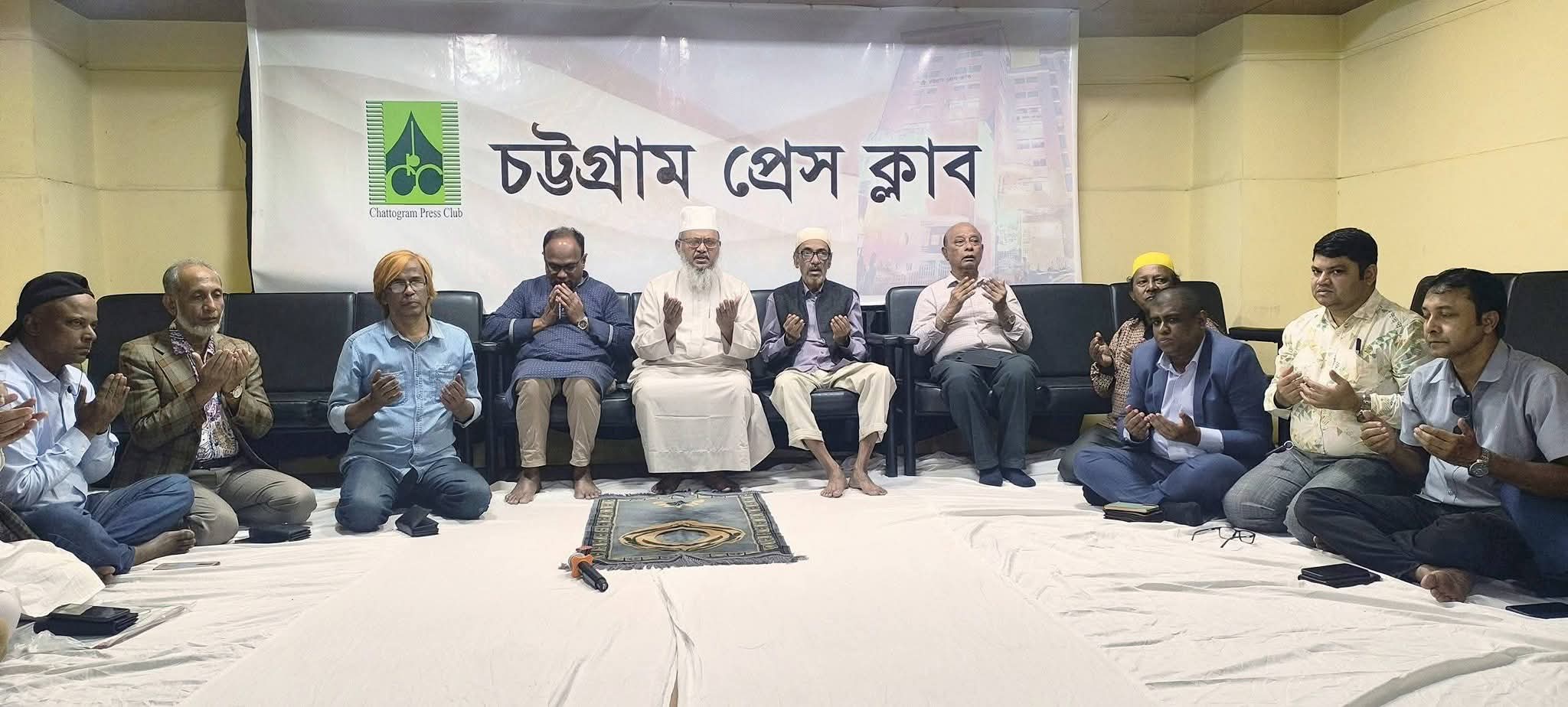 চট্টগ্রাম প্রেস ক্লাবের সদস্য সচিব জাহিদুল করিম কচির সভাপতিত্বে প্রেস ক্লাবের ভিআইপি লাউঞ্জে বিএনপি চেয়ারপারসন ও তিনবারের সাবেক সফল প্রধানমন্ত্রী দেশনেত্রী বেগম খালেদা জিয়ার দ্রুত আরোগ্য ও সুস্থতা কামনায় দোয়া মাহফিল অনুষ্ঠিত হয়েছে। অনুষ্ঠানে প্রেস ক্লাবের বর্তমান ও সাবেক কর্মকর্তা, সিনিয়র সাংবাদিক এবং বিভিন্ন গণমাধ্যমের প্রতিনিধিরা উপস্থিত ছিলেন।