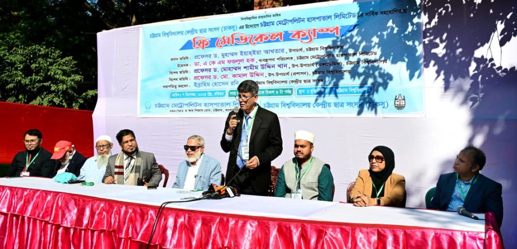 চট্টগ্রাম বিশ্ববিদ্যালয় কেন্দ্রীয় ছাত্র সংসদের (চাকসু) আয়োজনে এবং চট্টগ্রাম মেট্রোপলিটন হাসপাতাল লিমিটেড এর সার্বিক সহযোগিতায় চবি শিক্ষার্থীদের জন্য দিনব্যাপী ফ্রি মেডিকেল ক্যাম্প আজ রবিবার (৭ ডিসেম্বর ২০২৫) সকাল ৯.৩০টায় চবি বুদ্ধিজীবী চত্ত্বরে উদ্বোধন করা হয়।