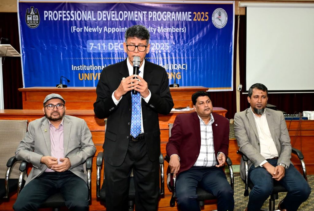 চট্টগ্রাম বিশ্ববিদ্যালয় ইনস্টিটিউশনাল কোয়ালিটি এস্যুরেন্স সেলের (আইকিউএসি) উদ্যোগে বিশ্ববিদ্যালয়ের বিভিন্ন বিভাগ ও ইনস্টিটিউটে সম্প্রতি নিয়োগপ্রাপ্ত শিক্ষকদের পাঁচদিনব্যাপী (৭-১১ ডিসেম্বর) “Foundation Training Program For Professional Development” শীর্ষক এক প্রশিক্ষণের উদ্বোধনী অনুষ্ঠান আজ রবিবার (৭ ডিসেম্বর ২০২৫) সকাল ৯টায় চবি উপাচার্য দপ্তরের সম্মেলন কক্ষে অনুষ্ঠিত হয়। এতে প্রধান অতিথি হিসেবে উপস্থিত ছিলেন চট্টগ্রাম বিশ্ববিদ্যালয়ের উপাচার্য প্রফেসর ড. মুহাম্মদ ইয়াহ্ইয়া আখতার। বিশেষ অতিথি হিসেবে উপস্থিত ছিলেন উপ-উপাচার্য (প্রশাসন) প্রফেসর ড. মো. কামাল উদ্দিন এবং চবি রেজিস্ট্রার (ভারপ্রাপ্ত) প্রফেসর ড. মোহাম্মদ সাইফুল ইসলাম।