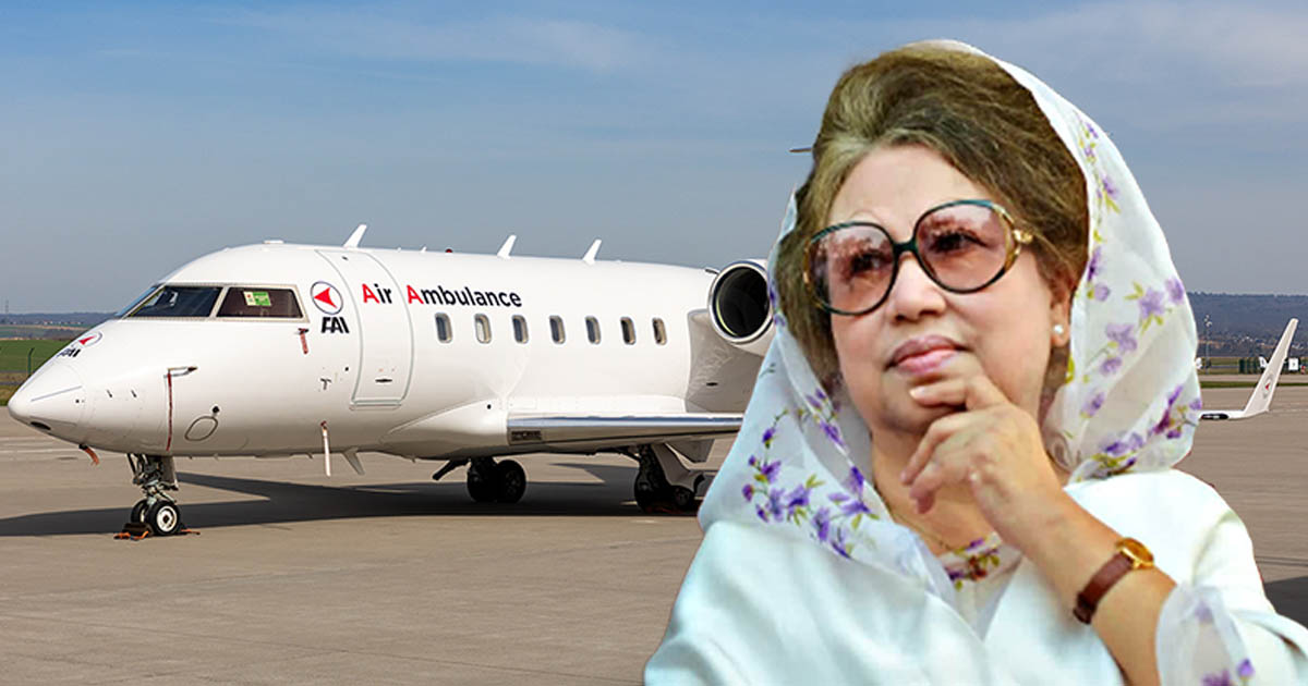 এর আগে রোববার জমা দেওয়া আবেদনের ভিত্তিতে এয়ার অ্যাম্বুলেন্সটির সকাল ৮টায় ঢাকায় ল্যান্ডিং ও রাত ৯টায় খালেদা জিয়াকে নিয়ে লন্ডনে যাত্রার অনুমতি দেওয়া হয়েছিল। কাতার সরকারের সহায়তায় ভাড়া করা এয়ার অ্যাম্বুলেন্সটি ছিল বোমবার্ডিয়ার চ্যালেঞ্জার ৬০৪, যা দীর্ঘ দূরত্বের রোগী পরিবহনে ব্যবহৃত হয়।