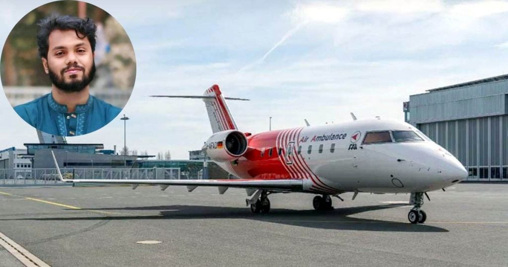 সোমবার দুপুর ১টা ৫৫ মিনিটে ওসমান হাদিকে বহনকারী এয়ার অ্যাম্বুলেন্সটি ঢাকার হযরত শাহজালাল আন্তর্জাতিক বিমাবন্দর থেকে উড্ডয়ন করে।