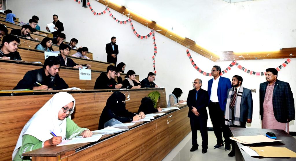 ঢাকা বিশ্ববিদ্যালয়ের বিজ্ঞান ইউনিটের ২০২৫-২০২৬ শিক্ষাবর্ষের আন্ডারগ্র্যাজুয়েট প্রোগ্রাম ভর্তি পরীক্ষা চট্টগ্রাম বিশ্ববিদ্যালয় কেন্দ্রে আজ শনিবার (২৭ ডিসেম্বর ২০২৫) বিকাল ৩.৩০টা থেকে বিকাল ৫টায় চবি বিজ্ঞান অনুষদ ভবন, জীববিজ্ঞান অনুষদ ভবন, মেরিন সায়েন্সস এন্ড ফিশারিজ অনুষদ ভবন, ড. মুহাম্মদ ইউনূস ভবন ( সমাজবিজ্ঞান অনুষদ) ও ফরেস্ট্রি এন্ড এনভায়রনমেন্টাল সায়েন্সস ইনস্টিটিউট ভবনে অনুষ্ঠিত হয়। বিকাল ৩টায় চবি বিজ্ঞান ও মেরিন সায়েন্সস এন্ড ফিশারিজ অনুষদ ভবনে ঢাবি বিজ্ঞান ইউনিটের ভর্তি পরীক্ষার কেন্দ্র পরিদর্শন করেন চট্টগ্রাম বিশ্ববিদ্যালয়ের মাননীয় উপ-উপাচার্য (একাডেমিক) প্রফেসর ড. মোহাম্মদ শামীম উদ্দিন খান ও মাননীয় উপ-উপাচার্য (প্রশাসন) প্রফেসর ড. মো. কামাল উদ্দিন।