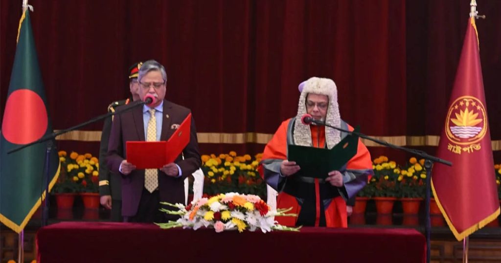 রোববার সকাল ১০টা ৩০ মিনিটে বঙ্গভবনের দরবার হলে আয়োজিত এক জমকালো অনুষ্ঠানে রাষ্ট্রপতি মো. সাহাবুদ্দিন তাকে শপথবাক্য পাঠ করান।