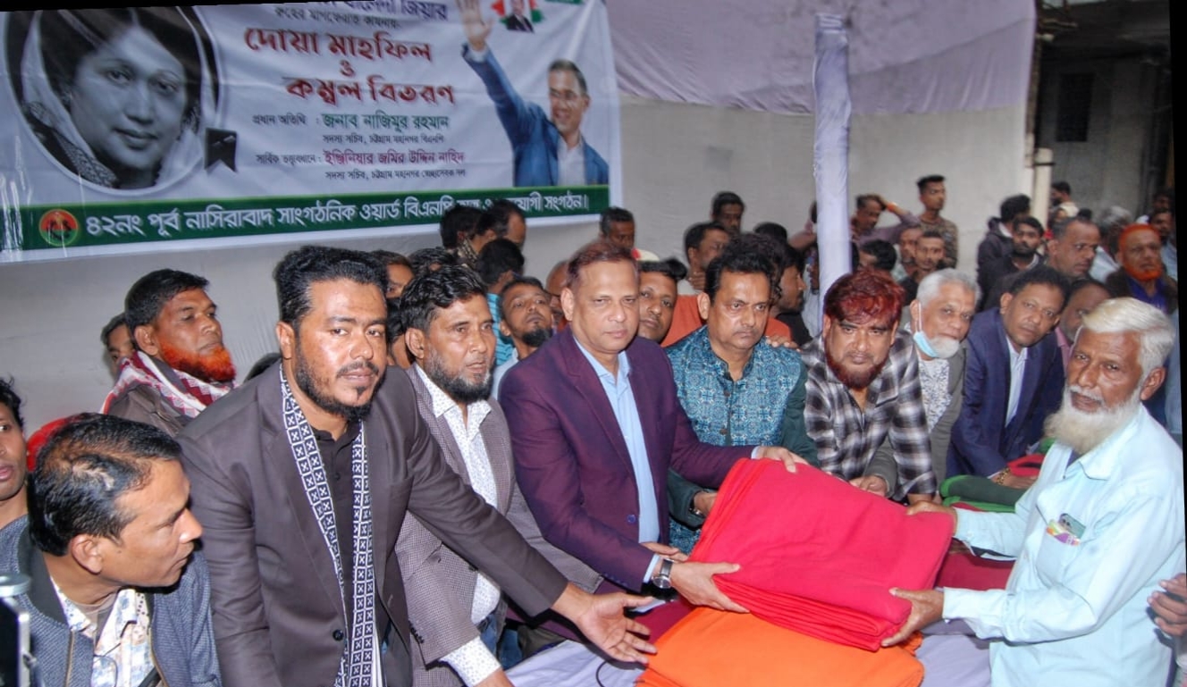 ১২ জানুয়ারি (সোমবার) বিকালে খুলশী কলোনি এলাকায় চট্টগ্রাম মহানগর স্বেচ্ছাসেবক দলের সদস্য সচিব ইন্জিনিয়ার জমির উদ্দিন নাহিদ এর উদ্যোগে ৮নং শুলকবহর ওয়ার্ডের ৪২নং সাংগঠনিক ওয়ার্ড বিএনপি ও অঙ্গ সংগঠনের সমন্বয়ে সাবেক সফল প্রধানমন্ত্রী, বিএনপির চেয়ারপারসন দেশনেত্রী বেগম খালেদা জিয়ার আত্মার মাগফেরাত কামনা করে দোয়া মাহফিল ও শীতার্ত অসহায় মানুষের মাঝে কম্বল বিতরণ করা হয়। চট্টগ্রাম মহানগর যুবদলের সাবেক সহ-সভাপতি এসএম রবের সভাপতিত্বে সাবেক ছাত্রনেতা জাকির হোসেন সরলের সঞ্চালনায় এতে প্রধান অতিথি হিসেবে বক্তব্য রাখেন চট্টগ্রাম মহানগর বিএনপির সদস্য সচিব নাজিমুর রহমান।