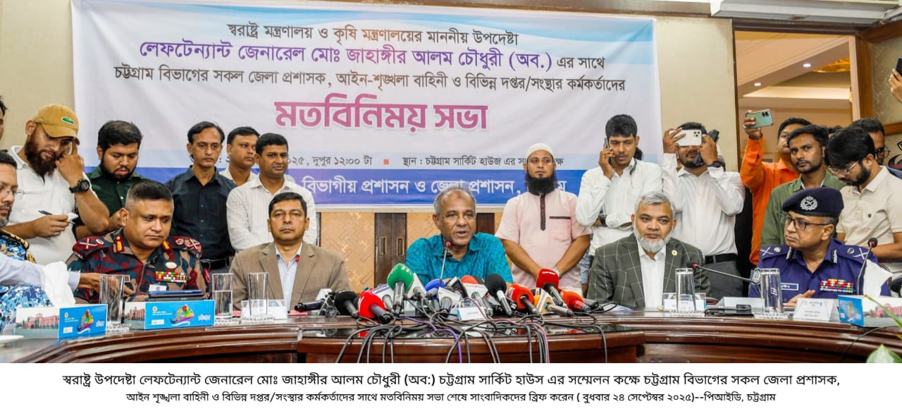 উপদেষ্টা আজ (২৪ সেপ্টেম্বর) দুপুরে চট্টগ্রাম সার্কিট হাউজের সম্মেলন কক্ষে বিভাগের সকল জেলা প্রশাসক, আইনশৃঙ্খলা বাহিনী ও বিভিন্ন দফতরের কর্মকর্তাদের সঙ্গে মতবিনিময় শেষে সাংবাদিকদের ব্রিফিংয়ে এসব কথা বলেন।