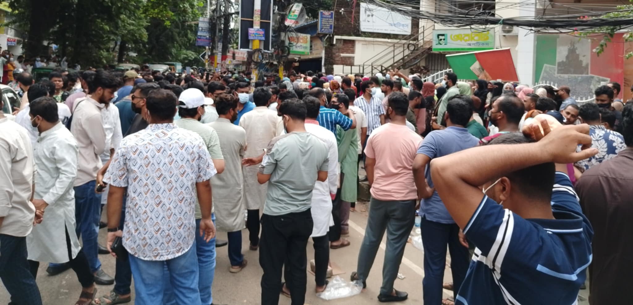 শুক্রবার সকাল থেকে চট্টগ্রামের বিভিন্ন জায়গা থেকে কর্মকর্তারা জামালখান এলাকায় জড়ো হন। বেলা ১১টার দিকে প্রেসক্লাব থেকে লিচু বাগান পর্যন্ত সড়কের দুই পাশে দাঁড়িয়ে তাঁরা মানববন্ধন করে এবং পরীক্ষার বিরুদ্ধে শ্লোগান দেন।