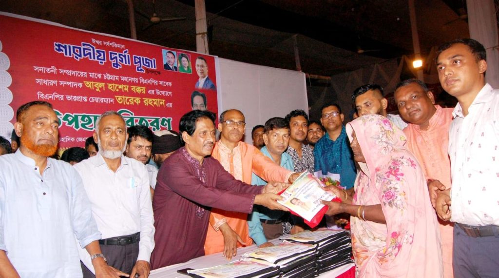 জেএমসেন হলে হিন্দু সম্প্রদায়ের মাঝে উপহার বিতরণকালে বক্কর