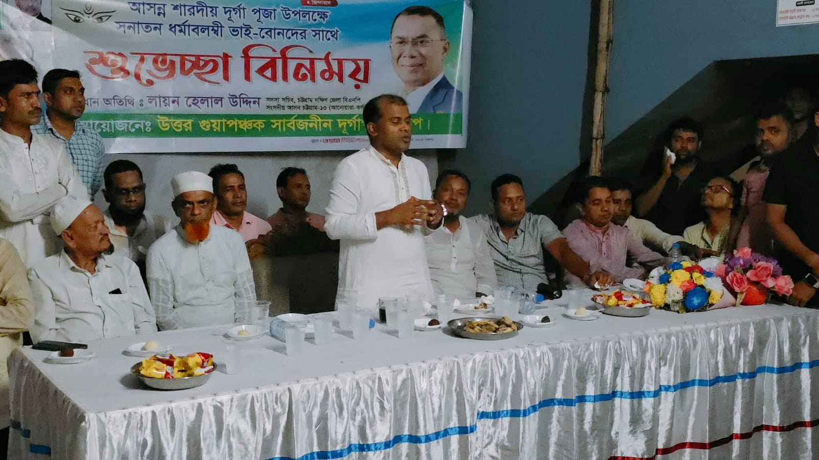 চট্টগ্রাম দক্ষিণ জেলা বিএনপির সদস্য সচিব লায়ন হেলাল উদ্দিন বলেছেন,সাম্প্রদায়িক সম্প্রীতি বাংলাদেশের অন্যতম বড় শক্তি। ধর্ম যার যার, উৎসব সবার এই চেতনাই আমাদের ঐক্যবদ্ধ করে। তারেক রহমানের নেতৃত্বে আমরা একটি ঐক্যবদ্ধ, শান্তিপূর্ণ ও সম্প্রীতিময় বাংলাদেশ গড়ে তুলতে চাই।