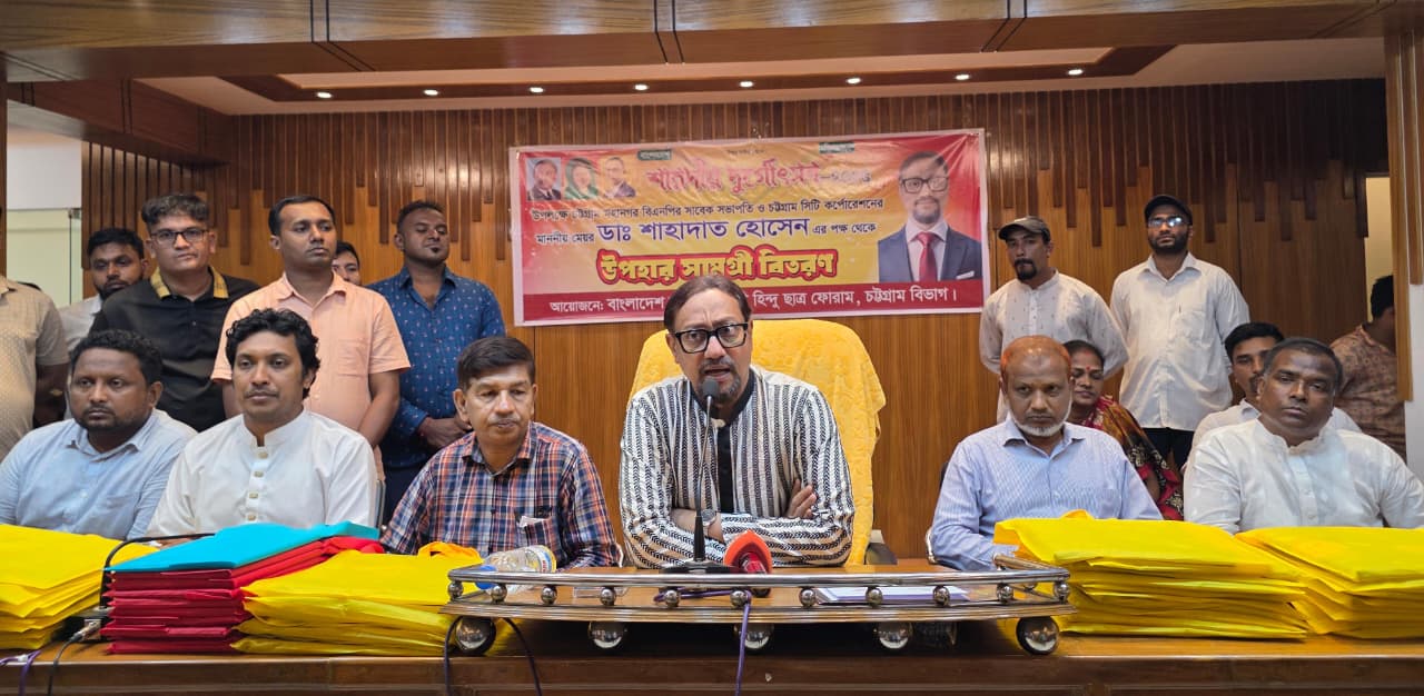 রোববার (২৮ সেপ্টেম্বর) বিকেলে লালদিঘীস্থ চট্টগ্রাম সিটি কর্পোরেশন পাবলিক লাইব্রেরির সম্মেলন কক্ষে চট্টগ্রাম মহানগর বিএনপির সাবেক সভাপতি ও চসিক মেয়র ডা. শাহাদাত হোসেন এর পক্ষ থেকে আয়োজিত এই শারদীয় দুর্গোৎসব ২০২৫ উপলক্ষে উপহার সামগ্রী বিতরণ অনুষ্ঠান আয়োজন করে বাংলাদেশ জাতীয়তাবাদী হিন্দু ছাত্র ফোরাম, চট্টগ্রাম বিভাগ।