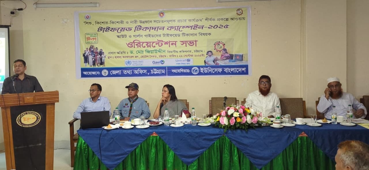 বিভাগীয় কমিশনার আজ চট্টগ্রাম মোটেল সৌকতএ রহালদা কনফারেন্স রুমে জেলা তথ্য অফিস চট্রগ্রাম এর ব্যবস্থাপনায় ও ইউনিসেফ এর সহযোগিতায় টাইফয়েড টীকা দান ক্যাম্পেইন ২০২৫ উপলক্ষে স্কাউট ওগার্লস গাইডদের ওরিয়েন্টেশন সভায় প্রধান অতিথির বক্তব্যে এই সব কথা বলেন।