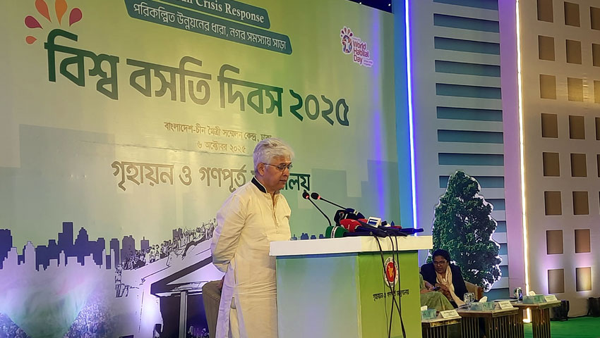 সোমবার (৬ অক্টোবর) রাজধানীর চীন-মৈত্রী সম্মেলন কেন্দ্রে বিশ্ব বসতি দিবস উপলক্ষে আয়োজিত আলোচনা সভায় প্রধান অতিথির বক্তব্যে তিনি এসব কথা বলেন।