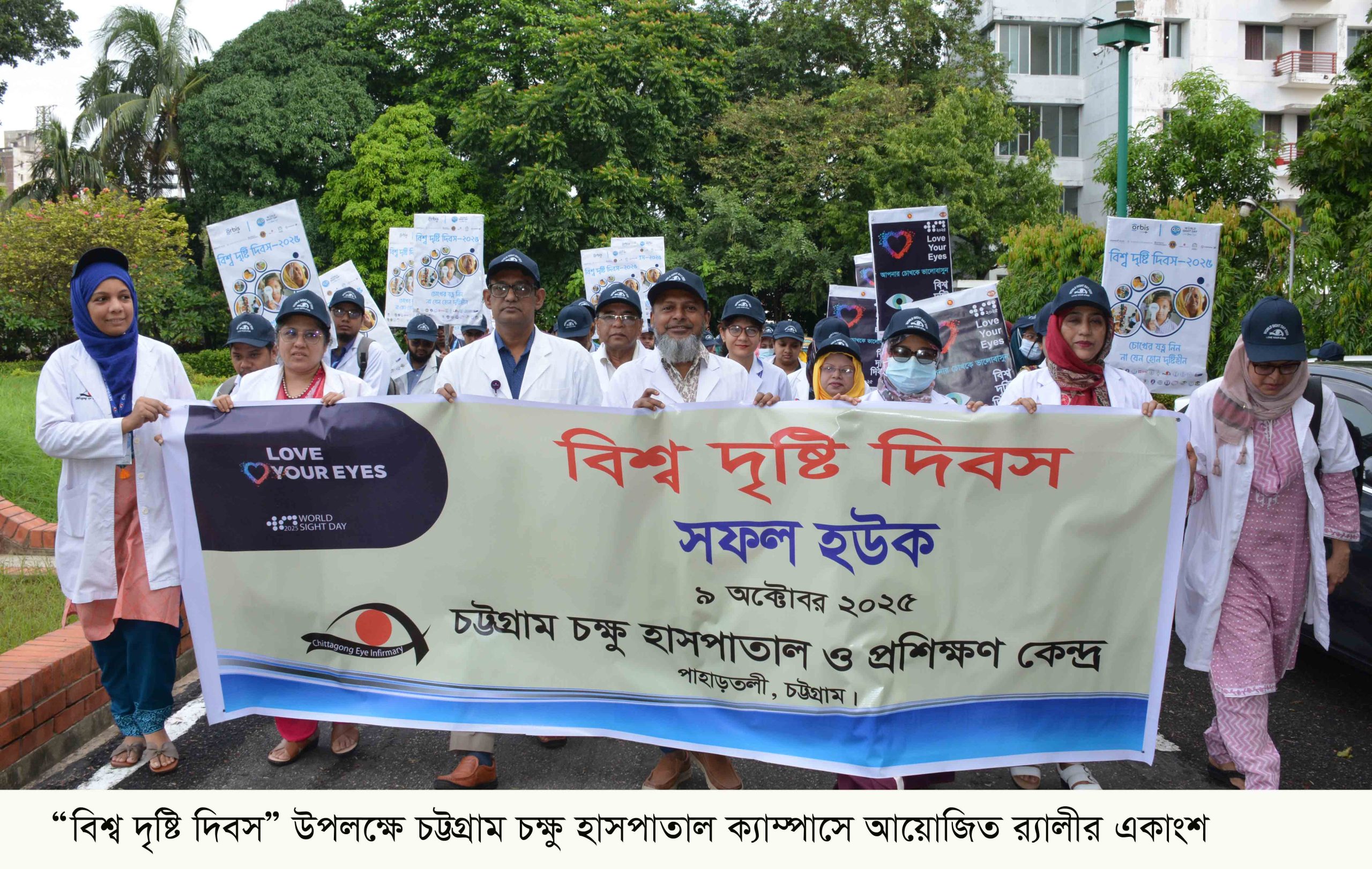 ‘লাভ ইউর আইস’ এই প্রতিপাদ্য বিষয়কে সামনে রেখে চট্টগ্রাম চক্ষু হাসপাতাল ও প্রশিক্ষণ কেন্দ্রে (সিইআইটিসি) ‘বিশ্ব দৃষ্টি দিবস-২০২৫’ উদ্যাপিত হয়েছে। অন্ধত্ব প্রতিরোধ এবং চোখের সমস্যা সম্পর্কে সাধারণের মধ্যে সচেতনতা ছড়িয়ে দিতে ২০০০ সাল থেকে প্রতিবছর অক্টোবরে বিশ্বব্যাপী দিবসটি পালিত হয়ে আসছে। এ উপলক্ষে অদ্য ৯ অক্টোবর বৃহস্পতিবার সকাল সোয়া আটটায় সিইআইটিসি চত্ত্বরে আয়োজিত র্যালীতে উপস্থিত ছিলেন, অধ্যাপক ডা. মোহাম্মদ মুনিরুজ্জামান ওসমানী, ডা. এ.এস.এম মাহাবুবুল আলম, ডা. ফারজানা আক্তার চৌধুরী, ডা. সুজিত কুমার বিশ্বাস, ডা. কাজী তাহমিনা আক্তার, ডা. সুইটি বড়–য়া, ডা. মেরাজুল ইসলাম ভূঁইয়া, ডা. সালমা আকবর, ডা. আনিকা, ডা. অপরাজিতা রায়হান, ডা. সূবর্ণা সুলতানা, ডা. ফ্লোরা নাসরিন, ডা. তারিন, ডা. জোবায়াদা নুরসহ হাসপাতালের চিকিৎসক, অপটোমেট্রি, প্যারামেডিক ও শিক্ষার্থীবৃন্দ।