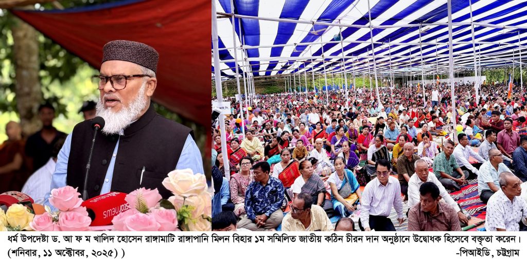 উপদেষ্টা আজ রাংঙামাটির রাঙ্গাপানি মিলন বিহার প্রাঙ্গণে ১ম সম্মিলিত জাতীয় কঠিন চীবর দান ২০২৫ অনুষ্ঠানে প্রধান অতিথি বক্তব্য এই সব কথা বলেন। এই সময় ধর্ম উপদেষ্টা ড. আ ফ ম খালিদ হোসেন উদ্বোধক অতিথি হিসেবে উপস্থিত ছিলেন।