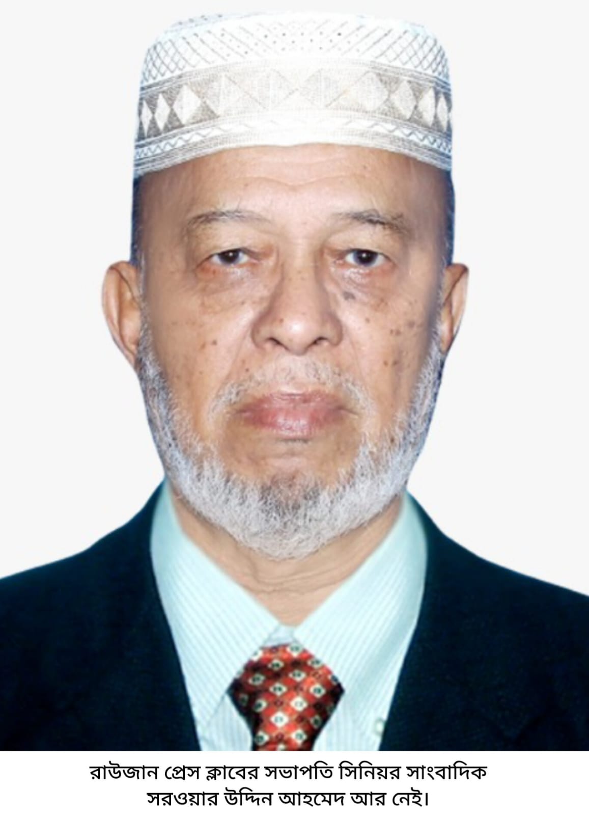 চট্টগ্রাম মেট্রোপলিটন সাংবাদিক ইউনিয়ন এবং প্রেসক্লাবে সদস্য সিনিয়র সদস্য ও রাউজান প্রেস ক্লাবের সভাপতি, সিনিয়র সাংবাদিক, চুয়েটের ডেপুটি ডিরেক্টর ফজলুর রহমানের শ্বশুর সরওয়ার উদ্দিন আহমেদ (৭৮) আর নেই। তিনি গতকাল ১১ অক্টোবর শনিবার রাত ৮টা ৪০মিনিটে চট্টগ্রাম নগরীর একটি বেসরকারি হাসপাতালে ইন্তেকাল করেছেন (ইন্না লিল্লাহি ওয়া ইন্না ইলাইহে রাজিউন)। আজ রবিবার বাদে জোহর রাউজানের সিকদার ঘাটা ঈদগাহে নামাজে জানাজা অনুষ্ঠিত হবে। মৃত্যুকালে তিনি স্ত্রী, ৩ মেয়ে ১ ছেলে রেখে গেছেন।