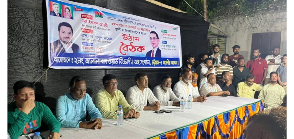 নাগরিক স্বচেতনতা বৃদ্ধির লক্ষে ২নং জালালাবাদ ওয়ার্ড বিএনপি ও অঙ্গসংগঠনের নেতাকর্মী ও কেন্দ্রভিত্তিক স্থানীয় জনসাধারনের সাথে আজ বালুচড়া আগুন ফকিরের মাজারের সামনে ১ম ও উত্তর কূলগাওস্থ কাঠাল বাগানে ২য় উঠান বৈঠক অনুষ্টিত হয়। উক্ত উঠানদ্বয়ে প্রধান অতিথির বক্তব্য রাখেন চট্টগ্রাম মহানগর বিএনপির আহবায়ক কমিটির সিনিয়র সদস্য মোহাম্মদ ইকবাল চৌধুরী। প্রধান বক্তার বক্তব্য রাখেন চট্টগ্রাম মহানগর বিএনপির আহবায়ক কমিটির সদস্য এস.এম.আবুল ফয়েজ, বিশেষ অতিথির বক্তব্য রাখেন চট্টগ্রাম মহানগর বিএনপির সাবেক সম্পাদক মন্ডলীর সদস্য ইয়াকুব চৌধুরী। উক্ত বৈঠকে সভাপতিত্ব করেন ২নং জালালাবাদ ওয়ার্ড় বিএনপির আহবায়ক মো: বেলাল ও সঞ্চালনা করেন ২নং জালালাবাদ ওয়ার্ড় বিএনপির সদস্য-সচিব আবদুল করিম।