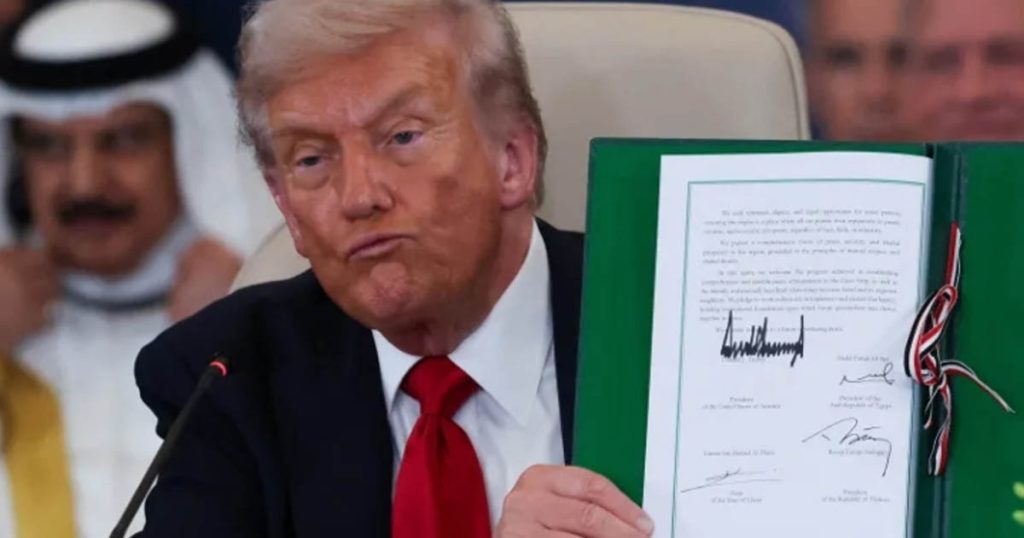 ইসরাইল-হামাস শান্তি চুক্তিতে সই করে দিনটিকে মধ্যপ্রাচ্যের জন্য ঐতিহাসিক দিন বলে ঘোষণা করেছেন মার্কিন প্রেসিডেন্ট ডোনাল্ড ট্রাম্প। একই সাথে ভূখণ্ডটির উন্নত ভবিষ্যত ও পুনর্গঠনের জন্য নিরস্ত্রীকরণের দিকে তাগিদ দেন তিনি।