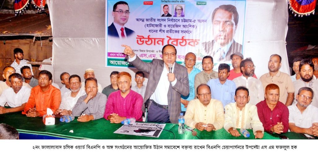 বিএনপি চেয়ারপার্সনের উপদেষ্টা বীর মুক্তিযোদ্ধা এস এম ফজলুল হক বলেন, বিএনপি গণমানুষের দল বিধায় বিগত ১৭ বছর আওয়ামীলীগ অবর্ণনীয় জুলুম-নির্যাতন ও গুম-হত্যা মামলা-হামলা করে বিএনপিসহ গণতন্ত্রকামী দলসমূহকে ফ্যাসীবাদ সরকার দমাতে পারেনি। বিগত সময়ে রাজপথের নেতা-কর্মীরা যে ঐক্যবদ্ধভাবে দমন পীড়নকে মোকাবেলা করেছে দেশের গণতন্ত্র পূণঃউদ্ধার ইতিহাসে তা অম্লান হয়ে থাকবে। সামনের নির্বাচনের জন্য এ মুহুর্ত থেকে দল ও দেশের স্বার্থে সবাইকে ঐক্যবদ্ধভাবে তারেক রহমান ঘোষিত রাষ্ট্র মেরামতের ৩১ দফা নিয়ে মাঠে কাজ হবে। আজ ২৯ অক্টোবর বুধবার বটতলস্থ বাজার চত্ত্বরে সন্ধ্যা- ৫টায় জালালাবাদ ওয়ার্ড বিএনপি ও অঙ্গ সংগঠন কর্তৃক আয়োজিত সমাবেশে এস এম ফজলুল হক এ কথা ব্যক্ত করেন। বায়েজিদ থানা বিএনপির সাবেক সহ-সভাপতি মোহাম্মদ ইদ্রিসের সভাপতিত্বে বিএনপি নেতা মোঃ ইব্রাহিম ও শাহ আলমের যৌথ সঞ্চালনায় সমাবেশে বিশেষ অতিথির বক্তব্য রাখেন চট্টগ্রাম উত্তর জেলা বিএনপি’র সাবেক সহ-সম্পাদক ও সাবেক উপজেলা চেয়ারম্যান মাহাবুবুল আলম চৌধুরী, মাওলানা মীর কাশেম, সিরাজুল ইসলাম রাশেদ, মোহাম্মদ শাহ আলম, একরাম সেলিম, এম ইলিয়াছ আলী, শফিউল আজম, সেলিম রানা, নুরুন্নবী মিলন, এস এম রানা, সৈয়দ সরওয়ার, হারুন উর রশীদ, নেজাম উদ্দিন, রাশেদ আলী মাহমুদ, দিদার আলী, মহিলা দলের শামীমা আক্তার, রায়হান উদ্দিন, জিয়াউদ্দিন মিজান, সেকান্দর হোসেন, টিকলু তালুকদার, ইব্রাহিম, মোঃ রফিক, নাছির উদ্দিন, বক্তেয়ার হোসেন, ইলিয়াছ বাচ্চু, গিয়াস উদ্দিন, তারেক সিদ্দিকী মুন্না, মোঃ সেলিম, যুবদল নেতা মোঃ আবির, রুবেল, শাহাদাৎ হোসেন, মাকসুদ রানা, এয়াকু আলী প্রমুখ।