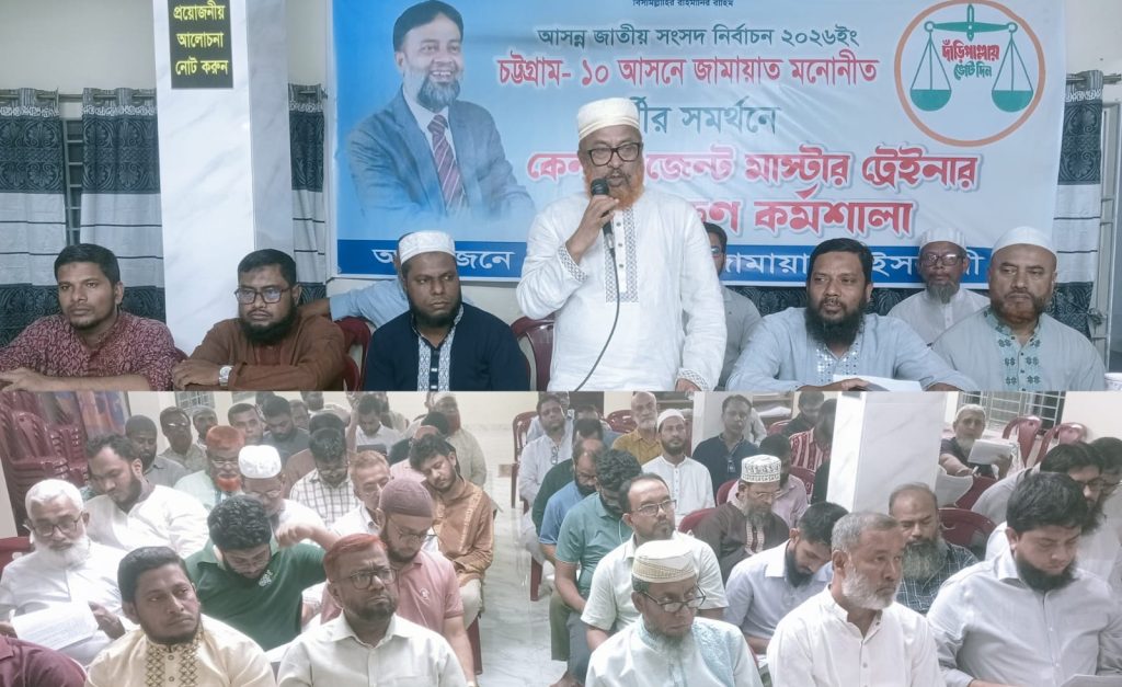 বাংলাদেশ জামায়াতে ইসলামী মনোনীত চট্টগ্রাম-১০ আসনের সংসদ সদস্য প্রার্থী অধ্যক্ষ শামসুজ্জামান হেলালীর সমর্থনে কেন্দ্র এজেন্ট মাস্টার ট্রেইনার প্রশিক্ষণ কর্মশালা সফলভাবে সম্পন্ন হয়েছে।
