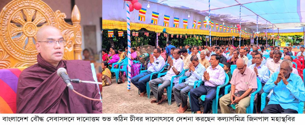 নিজের সৎ কর্মই পুণ্যের দীপে পরিণত হয়। সৎ মানুষেরাই পৃথিবী রক্ষা করে। তাঁদের পুণ্যকর্মের প্রভাব বিশ্বব্যাপী। মানব সত্তার উৎপত্তি প্রকৃতি ও পরিণতি সম্পর্কে সম্যক জ্ঞান অর্জন প্রয়োজন। জীবনের অস্তিত্ব, চিত্ত-চৈতসিক, জ্ঞান-প্রজ্ঞার সদ্ধর্ম নিজের ভিতর আবিষ্কার করাই বুদ্ধ দর্শনের লক্ষ্য। জগতে যে প্রাজ্ঞিক প্রক্রিয়া বা বিবর্তনশীল প্রজ্ঞা বিদ্যমান তা আর্যঅষ্টাঙ্গিক মার্গপথে অনুশীলন করে অর্জন করতে হবে। এভাবেই মানুষ হবে পুণ্যবান। মানুষের নিজের ও অপরের কল্যাণের জন্য পুণ্যের দীপের কাছে আশ্রয় নিতে হবে। পটিয়া উপজেলাধীন তেকোটা-মুকুটনাইটস্থ বাংলাদেশ বৌদ্ধ সেবাসদনে গত ১ নভেম্বর দানোত্তম শুভ কঠিন চীবর দানোৎসব উপলক্ষে প্রধান সদ্ধর্ম দেশক চন্দনাইশস্থ সদ্ধর্ম বিদর্শন ভাবনা পরিবেণের প্রতিষ্ঠাতা পরিচালক কল্যাণমিত্র জিনপাল মহাস্থবির উপরোক্ত সদ্ধর্মদেশনা করেন। দ্বিতীয় পর্বের এ ভাবগাম্ভীর্যপূর্ণ পরিবেশে আনোয়ারা তালসরা আনন্দরাম বিহারের অধ্যক্ষ ভদন্ত জিনরতন মহাস্থবিরের সভাপতিত্বে প্রধান অতিথির বক্তব্য রাখেন পটিয়া সম্মিলিত বৌদ্ধ পরিষদের সাধারণ সম্পাদক ও দানশীল ব্যক্তিত্ব লায়ন টিংকু বড়ুয়া। বিশেষ অতিথি ছিলেন অবসরপ্রাপ্ত ডিআইজি পি.আর বড়ুয়া। উদ্বোধন করেন বাংলাদেশ বৌদ্ধ সেবাসদনের পরিচালক ভদন্ত বিশ্বমিত্র মহাস্থবির। স্বাগত বক্তব্য রাখেন পরিচালনা পরিষদের চেয়ারম্যান শিক্ষক প্রতাপ কান্তি বড়ুয়া। সম্পাদকীয় বক্তব্য রাখেন পরিচালনা পরিষদের মহাসচিব সংগীত শিল্পী অনুপম বড়ুয়া। শুভেচ্ছা বক্তব্য রাখেন পরিচালনা পরিষদের দুইবারের সাবেক মহাসচিব সরিৎ চৌধুরী সাজু, যুগ্ম মহাসচিব অশোক বড়ুয়া বাবু, বাংলাদেশ বৌদ্ধ ঐক্য ফাউন্ডেশনের সাবেক সভাপতি (পটিয়া কমিটি) শৈবাল বড়–য়া, উপজেলা শিক্ষা কর্মকর্তা শুভাশিস বড়ুয়া, সহ-সম্পাদক প্রণব বড়ুয়া (পিপলু)। পঞ্চশীল প্রার্থনায় ধর্মীয় সম্পাদক রুনু বিকাশ বড়ুয়া। লিটন কান্তি বড়য়া ও শিক্ষক জুয়েল বড়–য়ার সঞ্চালনায় অন্যান্যদের মধ্যে উপস্থিত ছিলেন পূর্ব মুকুটনাইট ধর্মাঙ্কুর বিহারের অধ্যক্ষ ভদন্ত সংঘরতন মহাস্থবির, মুকুটনাইট গৌতম বিহারের অধ্যক্ষ ভদন্ত জ্ঞানজ্যোতি ভিক্ষু, অবসরপ্রাপ্ত ওসি শ্যামল কান্তি বড়ুয়া (সাবেক চেয়ারম্যান, বাংলাদেশ বৌদ্ধ সেবাসদন), ভাইস চেয়ারম্যান দেবাশিস বড়–য়া, চিত্র সাংবাদিক প্রকাশ বড়–য়া, যুগ্ম সম্পাদক অনুজ চৌধুরী, অর্থ সম্পাদক সেন্টু বড়–য়া, সহ সম্পাদক শিপলু বড়–য়া। প্রথম পর্বে সকাল বেলা বৌদ্ধ সেবাসদনের প্রতিষ্ঠাতা অগ্রমহাপন্ডিত প্রজ্ঞালোক মহাস্থবির, পন্ডিত ধর্মাধার মহাস্থবির, পন্ডিত শান্তপদ মহাস্থবির, উপ-সংঘরাজ সত্যপ্রিয় মহাস্থবির, ধর্মবোধি ম