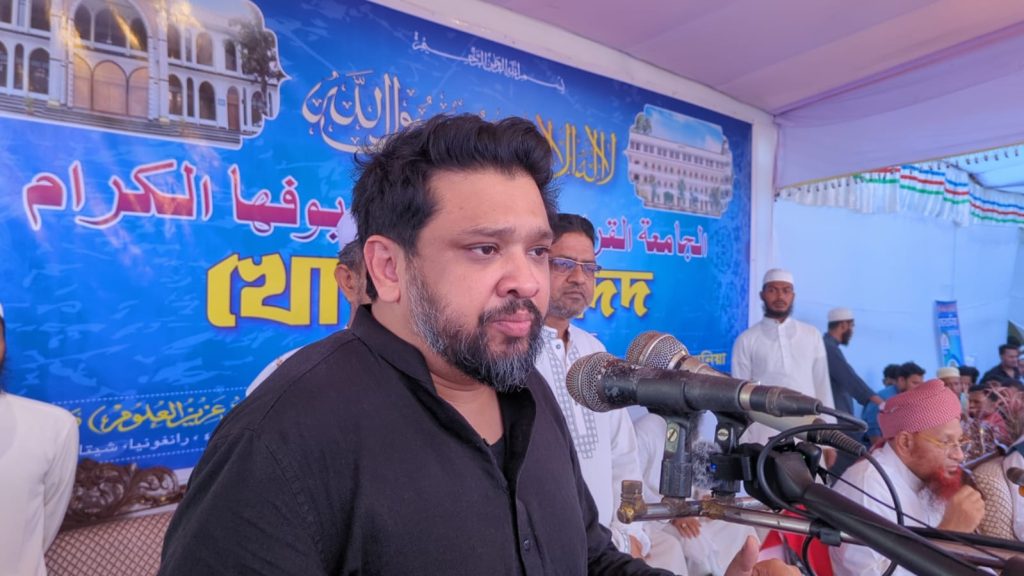 ক্যাপসন: রাঙ্গুনিয়ার চন্দ্রঘোনা ইউনুছিয়া আজিজুল উলূম মাদ্রাসার বার্ষিক সভায় বক্তব্য রাখছেন হুমাম কাদের চৌধুরী।